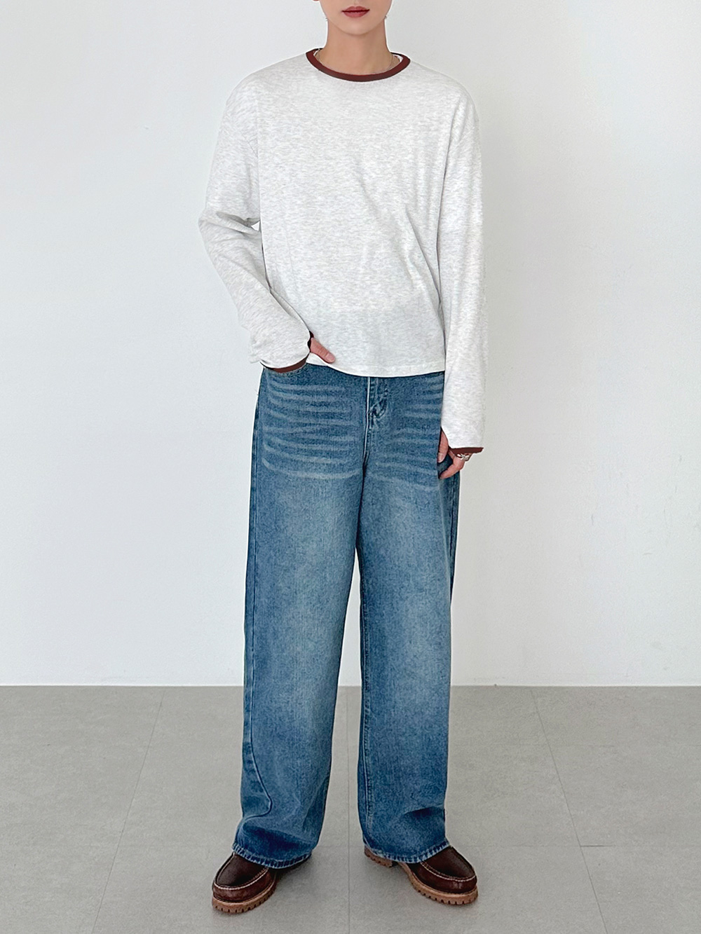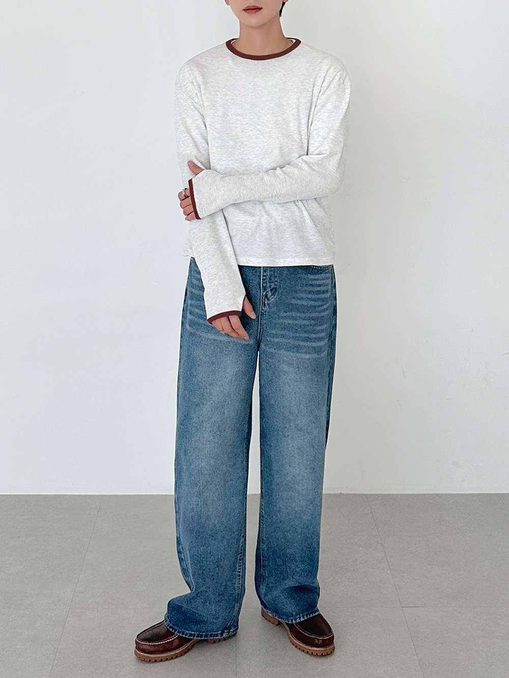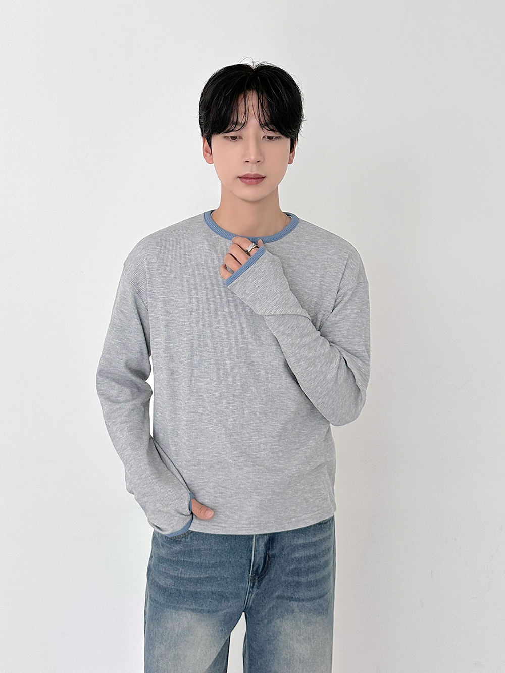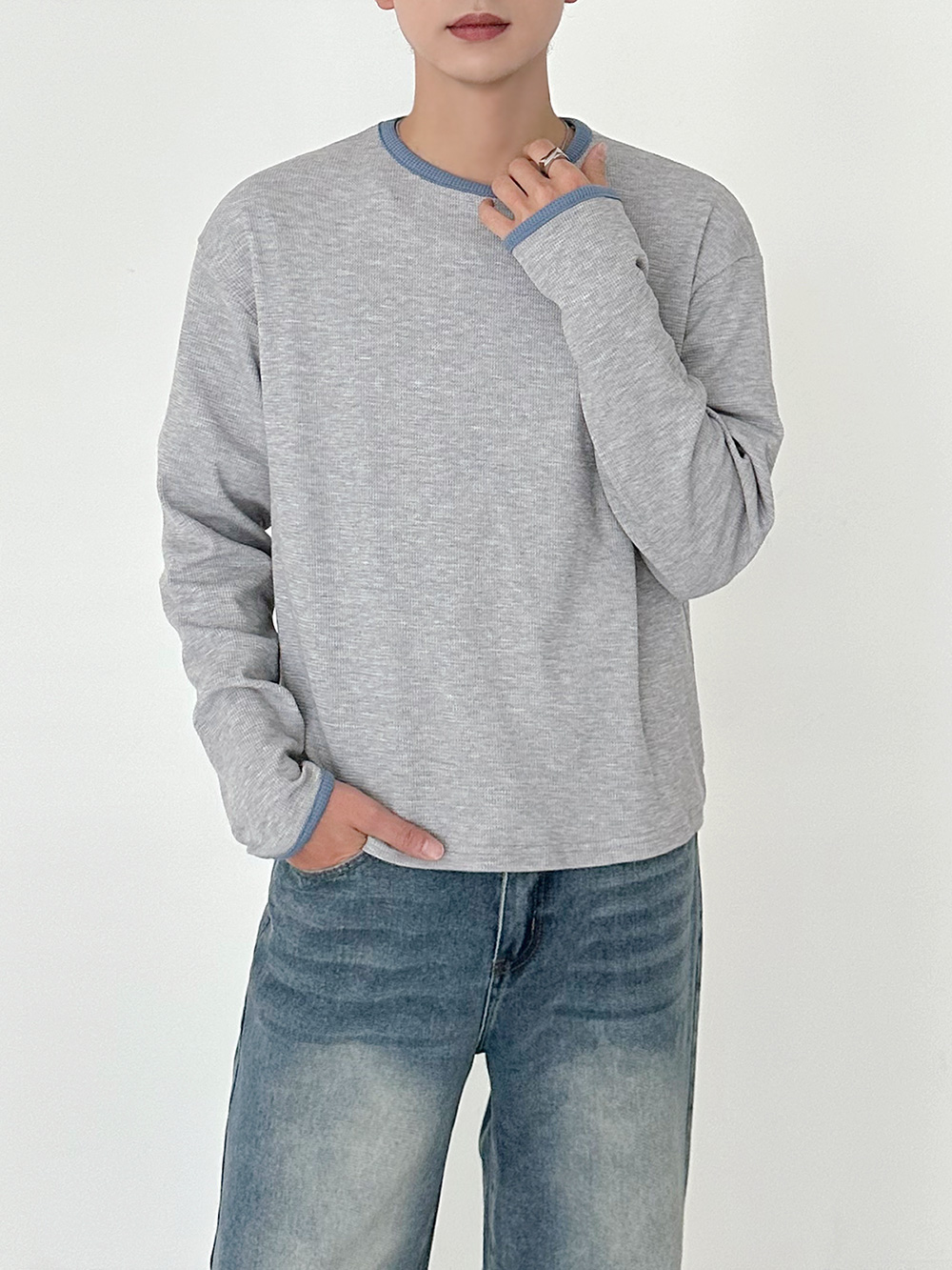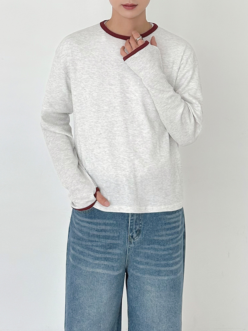 華夫格撞色短版長袖T卹 31078