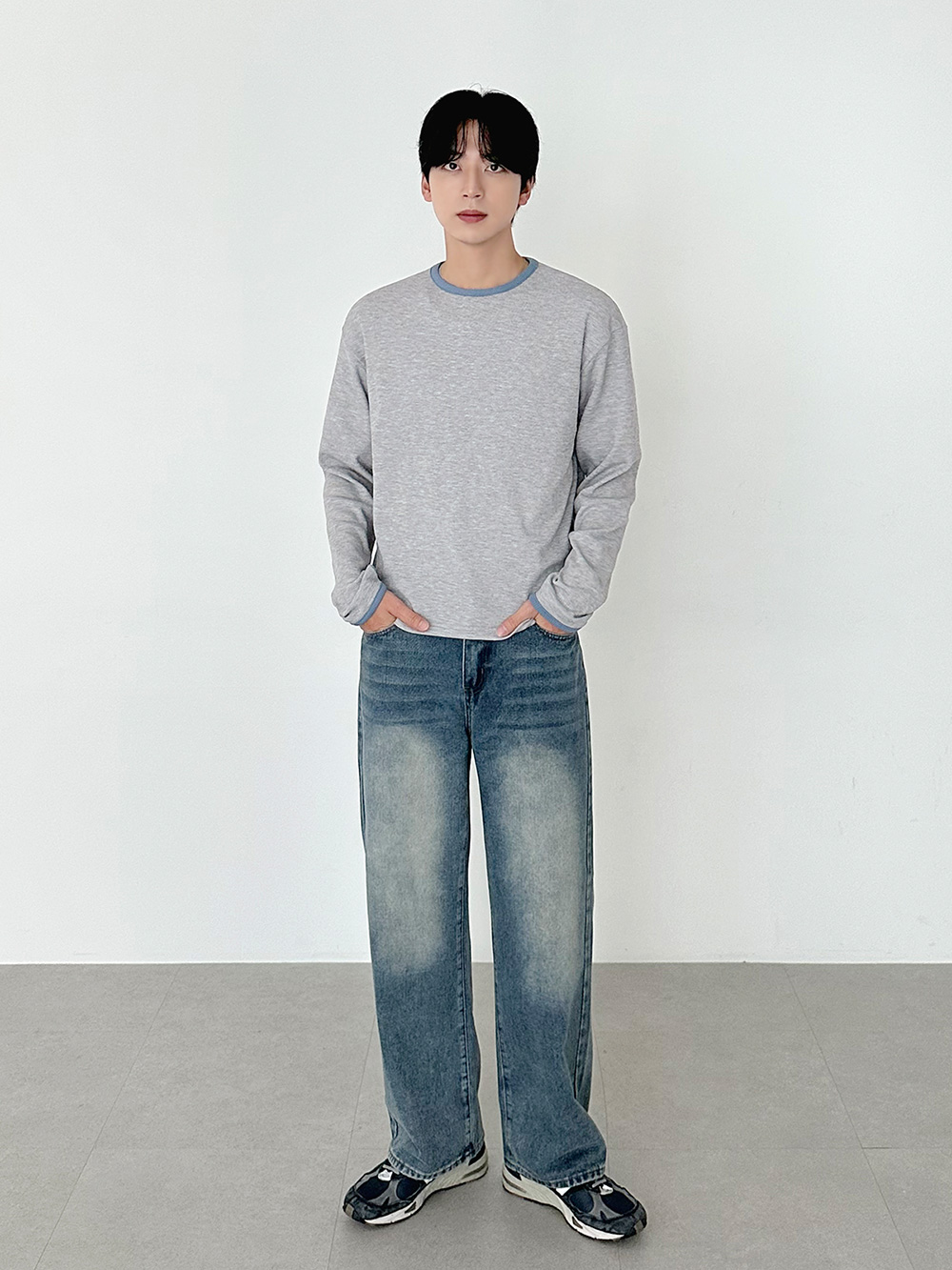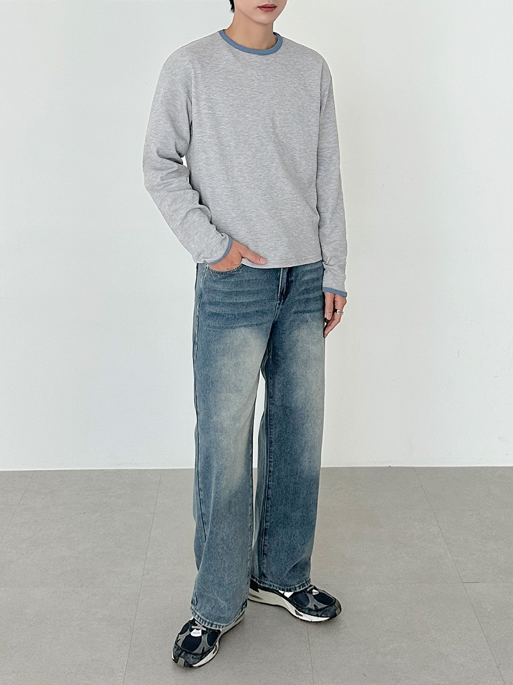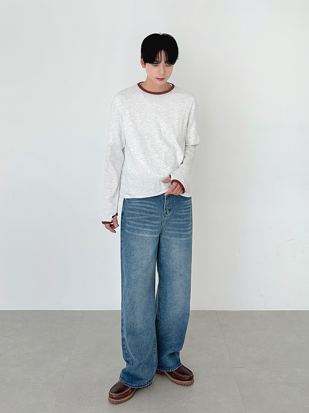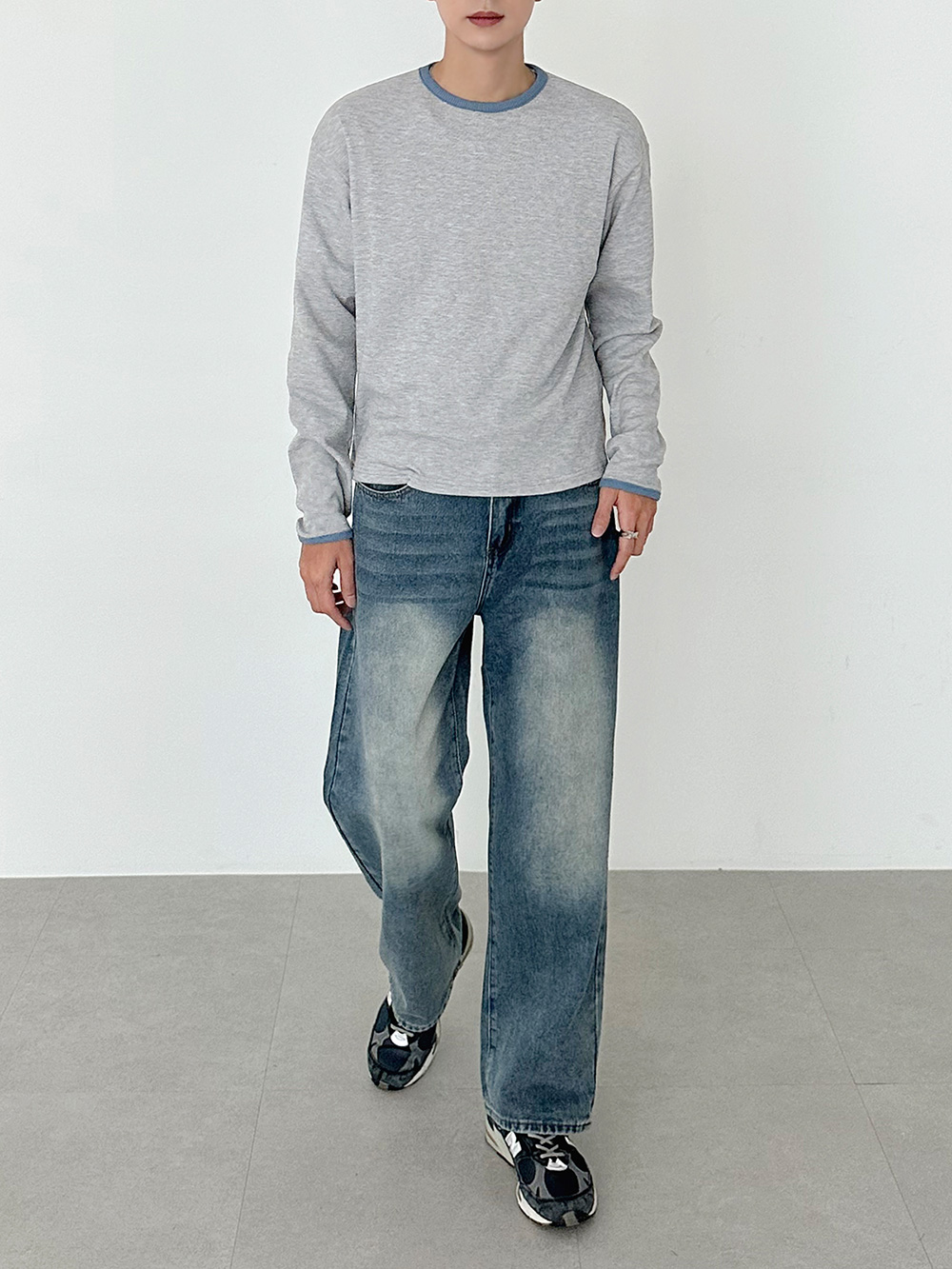 華夫格撞色短版長袖T卹 31078
